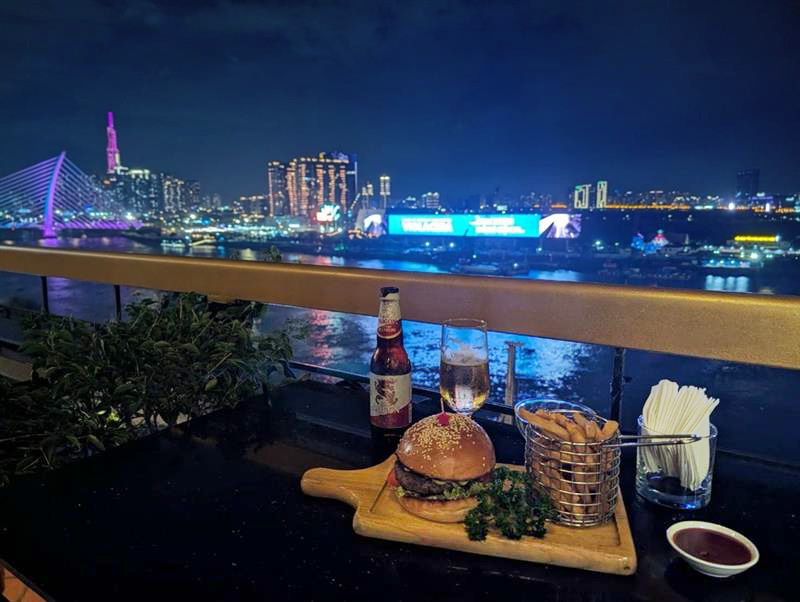 夜は一転、街がネオンに包まれ別世界のような表情に。川沿いのカフェテラスで夜風に吹かれながら食事を楽しむと、対岸に広がるイルミネーションがきらきらと揺れ、ホーチミンのエネルギーを肌で感じます。昼とはまったく違う活気ある表情に思わず見入ってしまいました。
