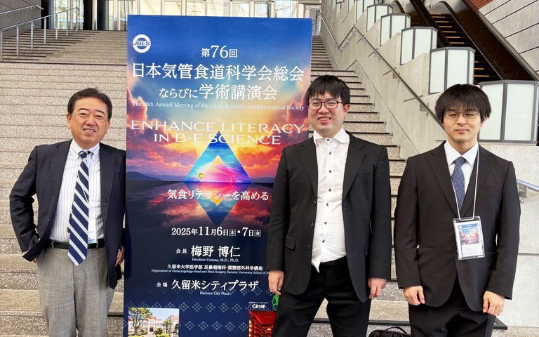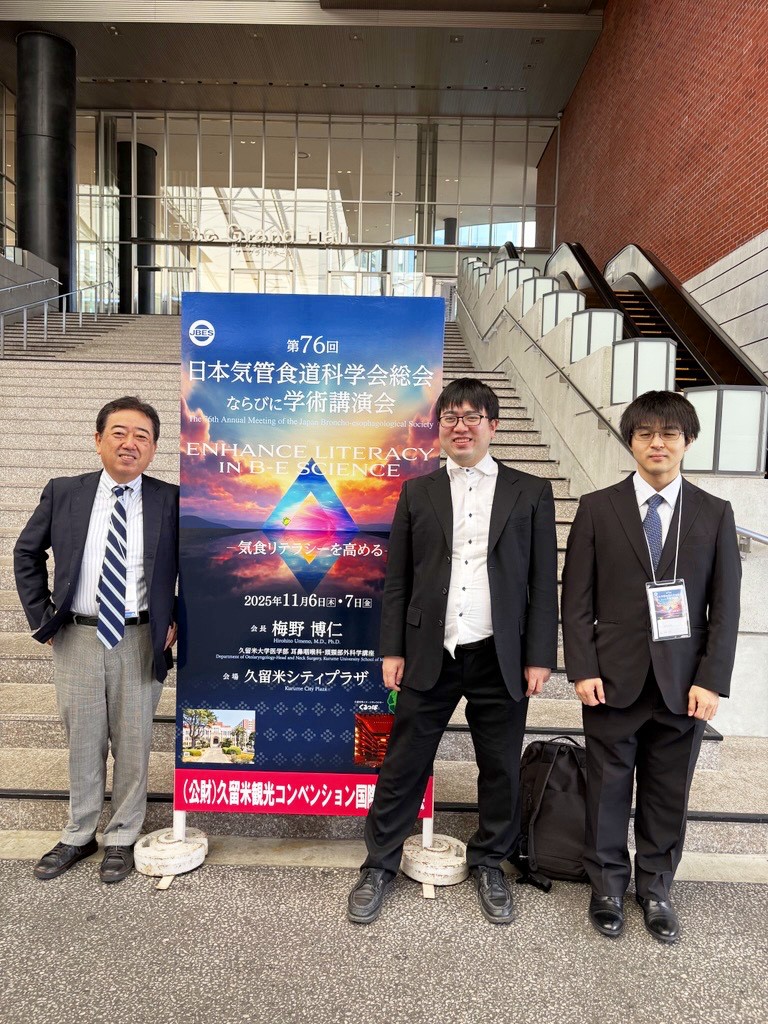 また、当科からは、まず清家先生が口演で「当科での甲状腺・副甲状腺手術症例における反回神経麻痺の検討」を発表され、日々の臨床から積み重ねた知見がしっかりと伝わる内容でした。