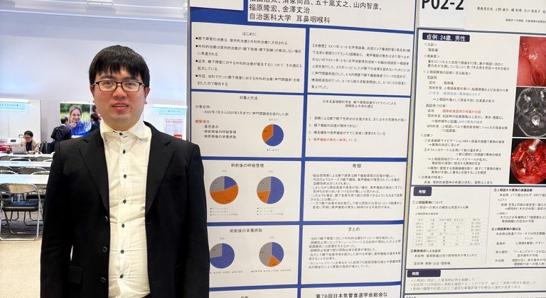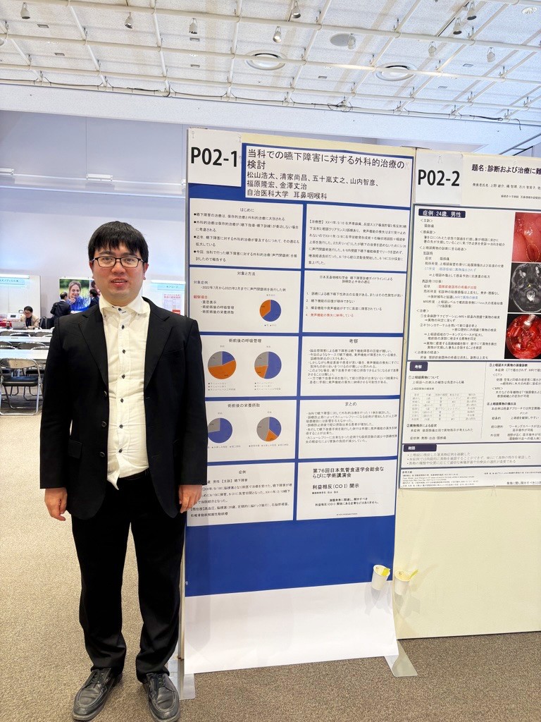 松山先生はポスターで「当科での嚥下障害に対する外科的治療の検討」を発表され、多様な症例に向き合ってきた経験がうかがえる解りやすい発表でした。当科のチームワークの良さや積み重ねてきたものの大きさを改めて感じます。